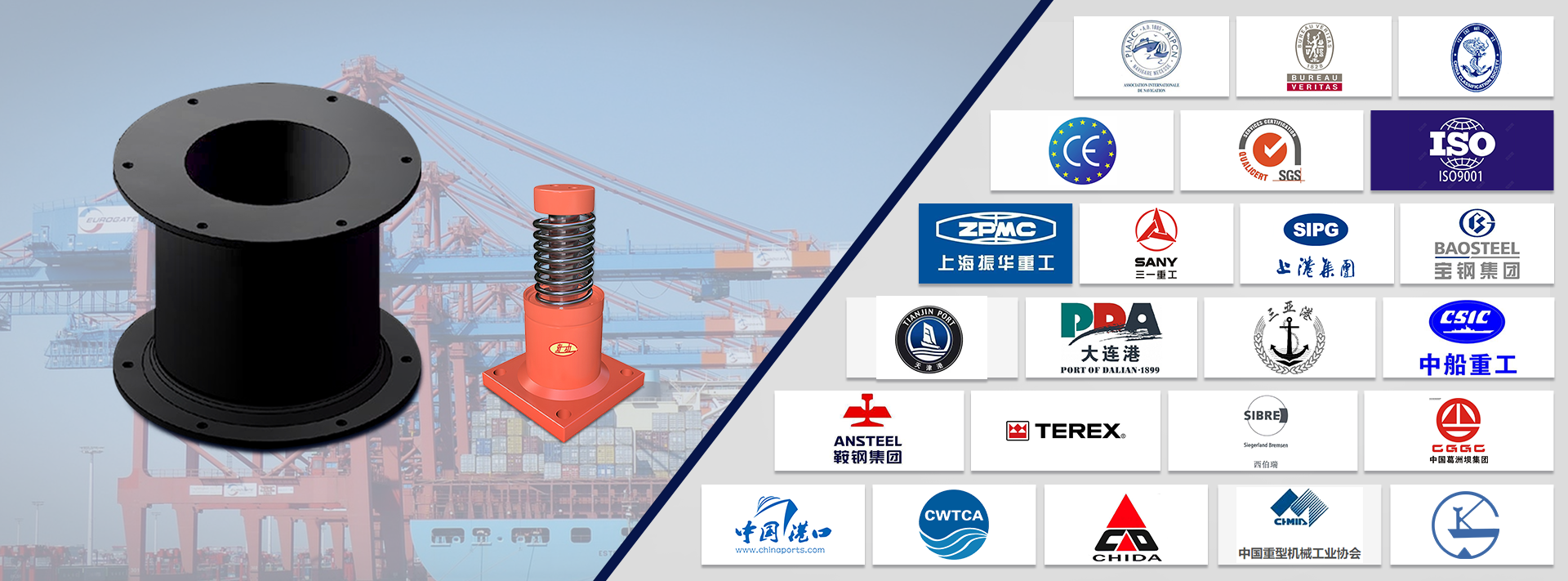 我们公司生产的缓冲器产品受到国际用户的认可,同时获得CE 国际认证证书、BV 国际检测认证、PIANC会员证书、中国船级社认证证书、SGS国际认证证书等。同时,我们公司荣获中国港口码头链商俱乐部会员、世界杰出华商协会会员、中国制造网认证供应商等荣誉。